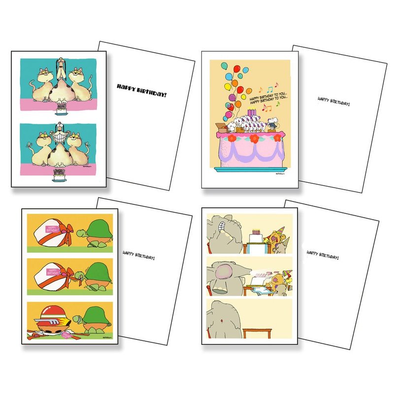 - 6 designs, 2 of each design. Funny Birthday card pack.