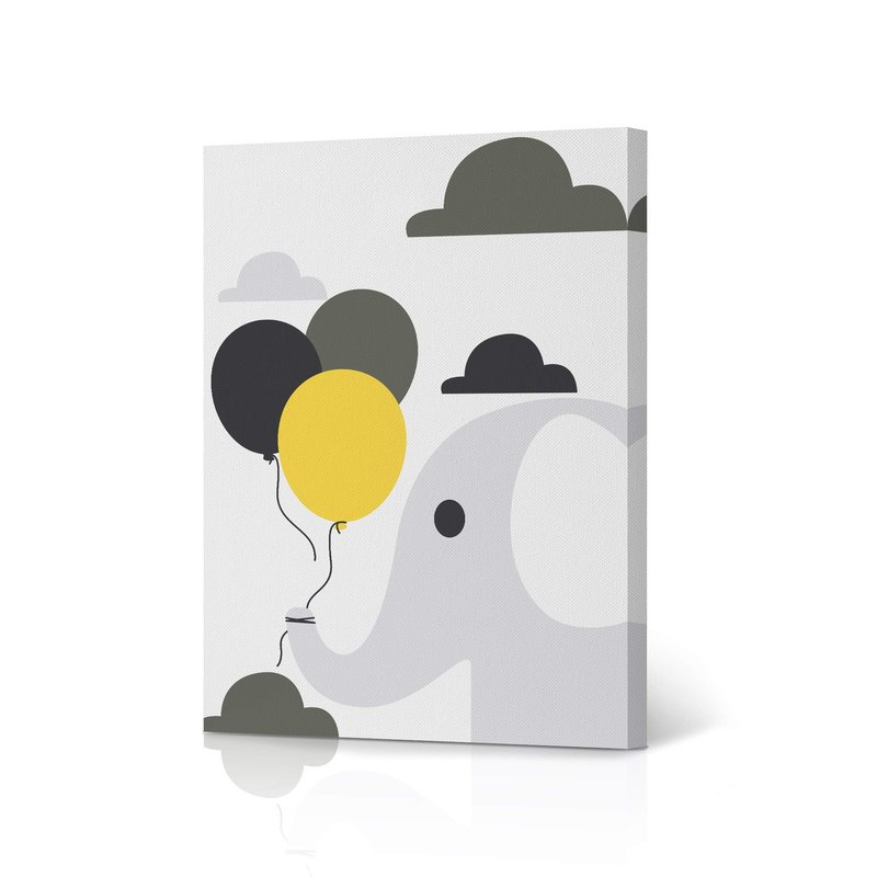 Cute Baby Elephant Nursery Decor Wall Art White Background Canvas Print Baby Girl and Baby Boy Kids Room Decor Nursery Room Decor Framed Ready to Hang-%100 Handmade in The USA-12x8