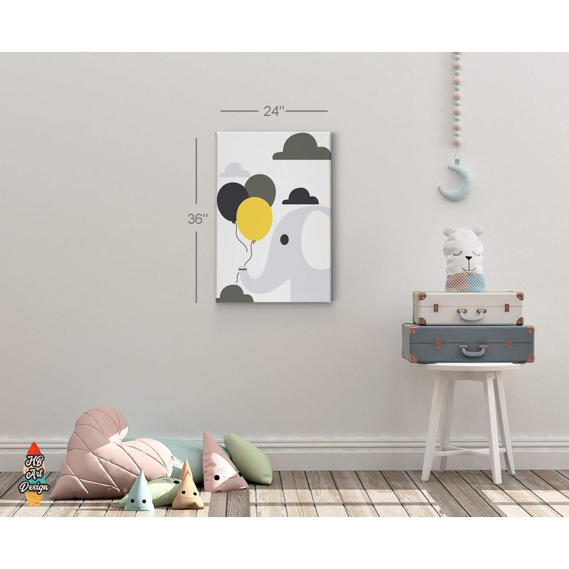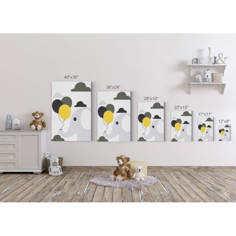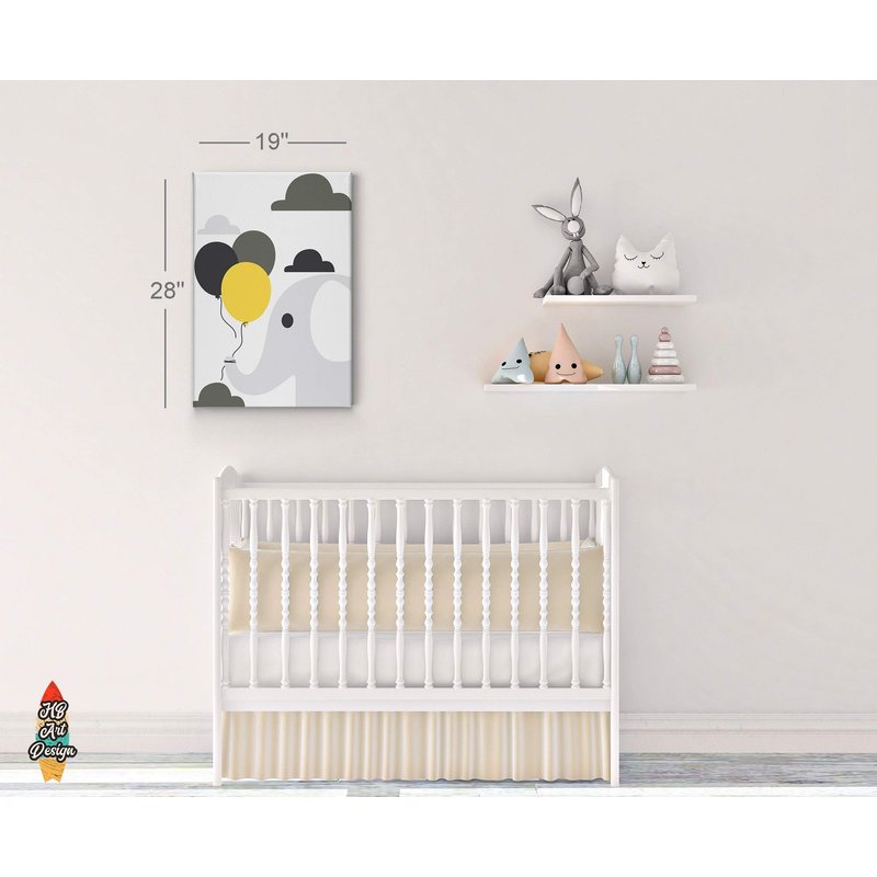 Cute Baby Elephant Nursery Decor Wall Art White Background Canvas Print Baby Girl and Baby Boy Kids Room Decor Nursery Room Decor Framed Ready to Hang-%100 Handmade in The USA-22x15