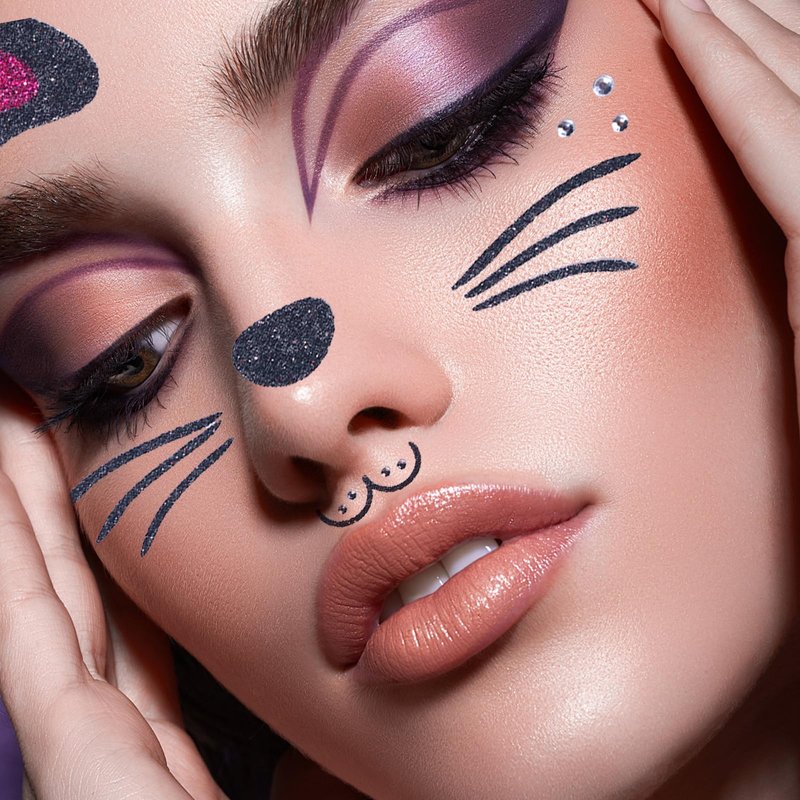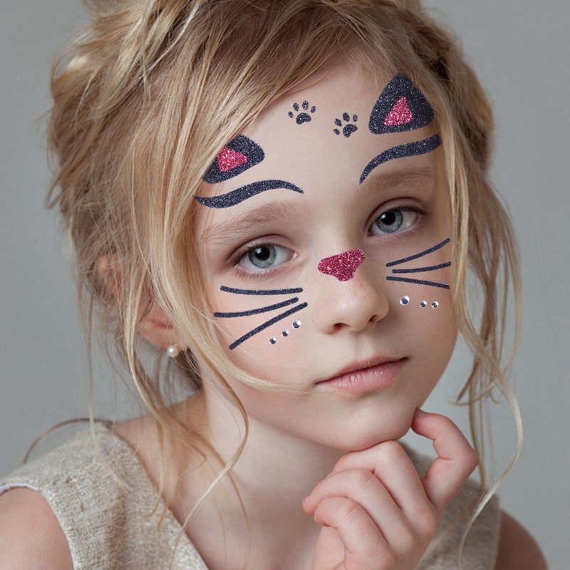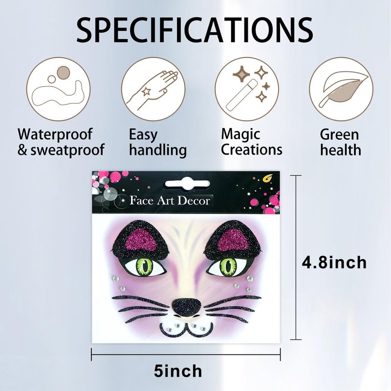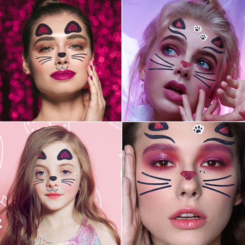 - šš®šš ššš¬š¢š š§:There are two Cat patterns on animal face stickers, which are fashionable and cute. They also use sparkling sequins and diamonds to make the face stickers more exquisite, making them perfect for decorating your face and eyes.