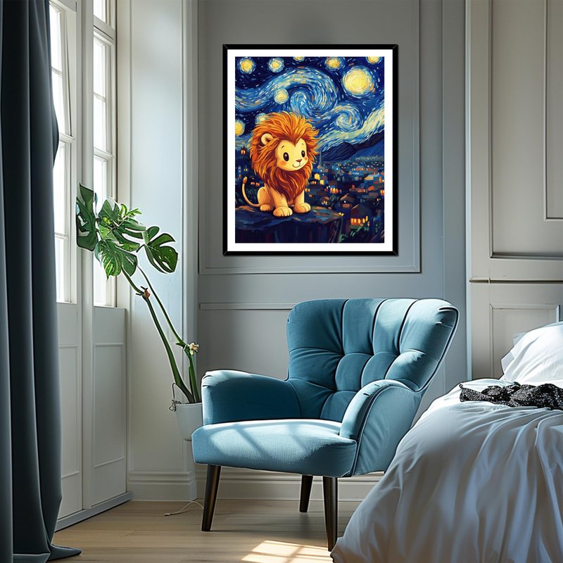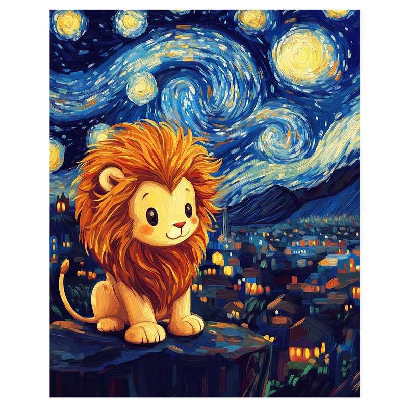 Cute Lion Acrylic Paints for Home Wall Decor, Starry Night Landscape Oil Painting Gift Acrylic Paint for Beginner, Animal DIY Painting by Numbers for Adults(16×20inch, No Frame)
