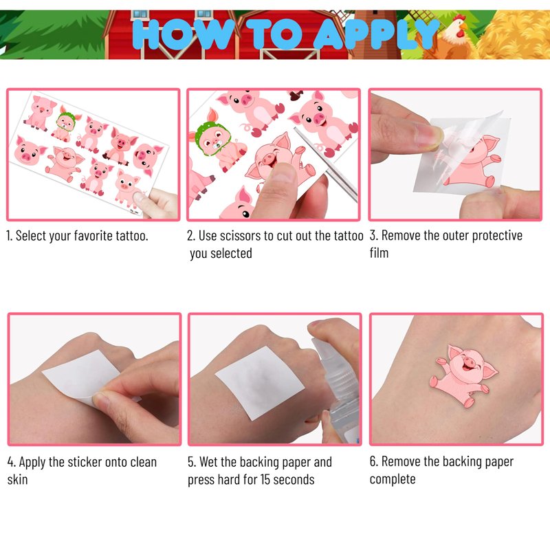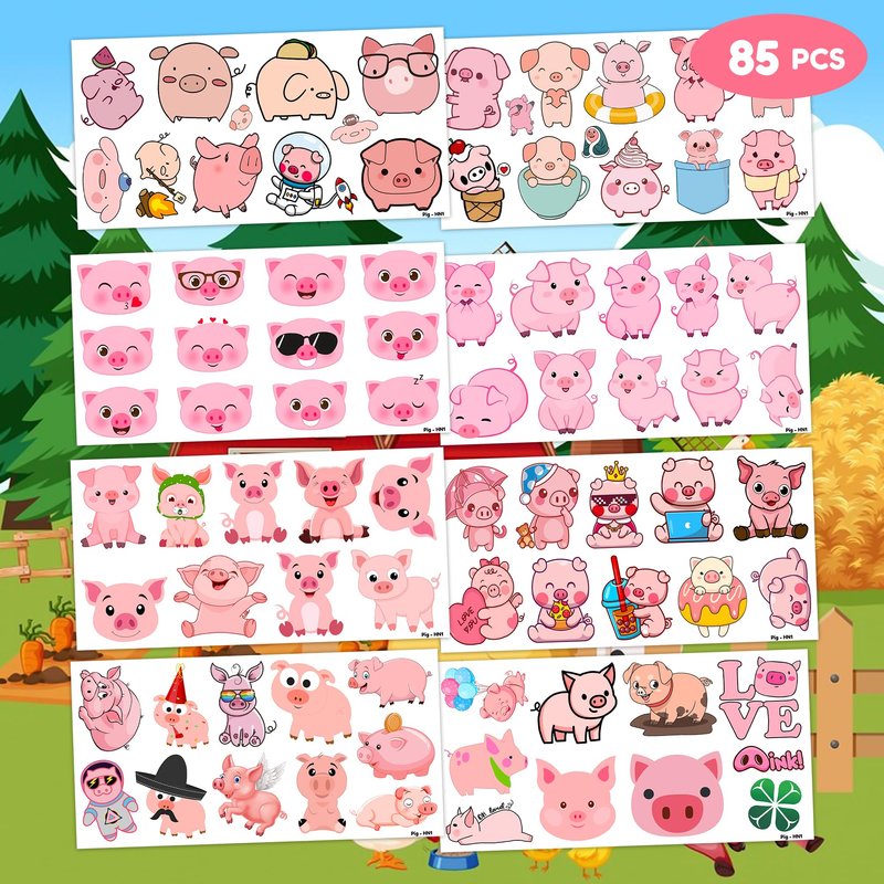- Pattern rich: Cute Funny Pink Pig Little Piggy Farm Barnyard Temporary Tattoos for Kids include 8 Sheets 85 PCS, the size of each sheet is 6.1 * 3.1 inches. Having a variety of characteristics, shapes and vibrant colors can stimulate your children's imaginations and bring a creative atmosphere to your Pig Theme Party.