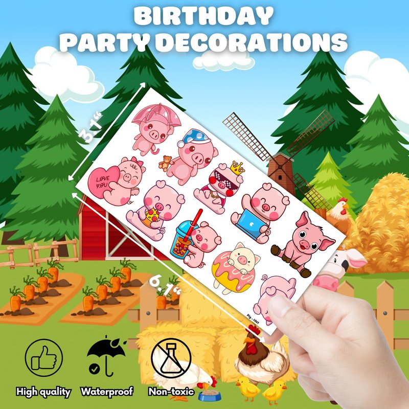 - Widely used: These Cute Funny Pink Pig Little Piggy Farm Barnyard Temporary Tattoos pieces are suitable for many occasions such as birthday parties, baby showers, birthday gifts, party decorations, gatherings and other special celebrations. It also can be applied on laptop, cup, luggage, phone case and so on which could make you look more impressive.