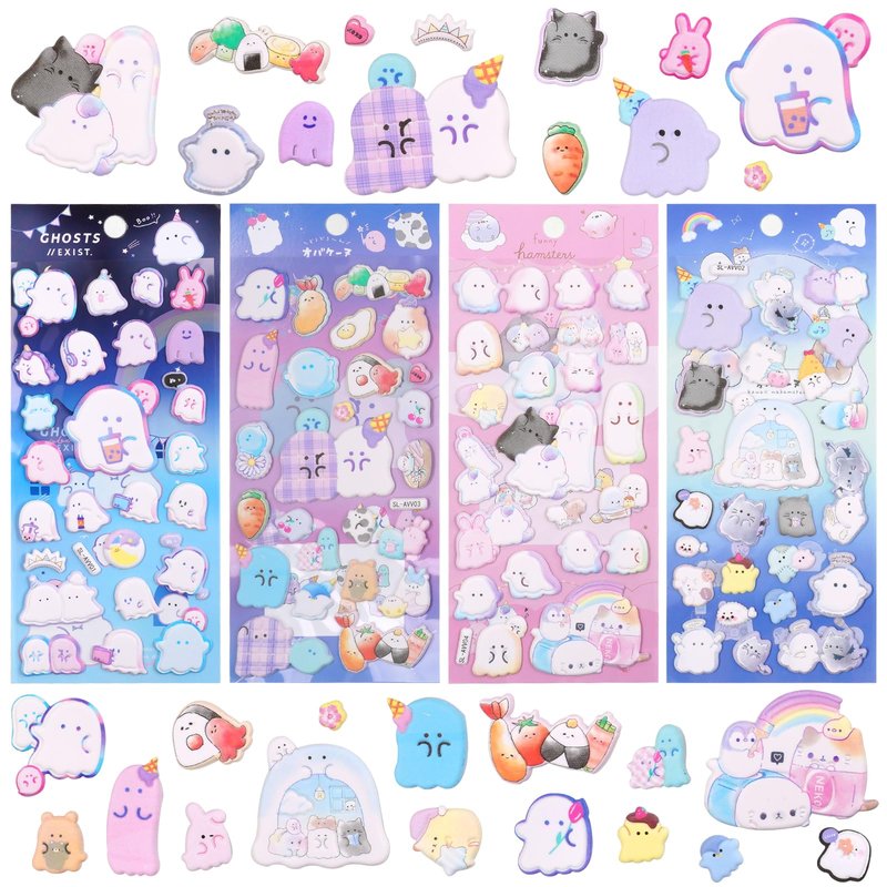 Cute Puffy Ghost Stickers for Kids - Kawaii 3D Hamster Cat Designs for Girls and Teens - Perfect for Notebook, Photo Album, Party Favors,Cards Decorating,4 Sheets.