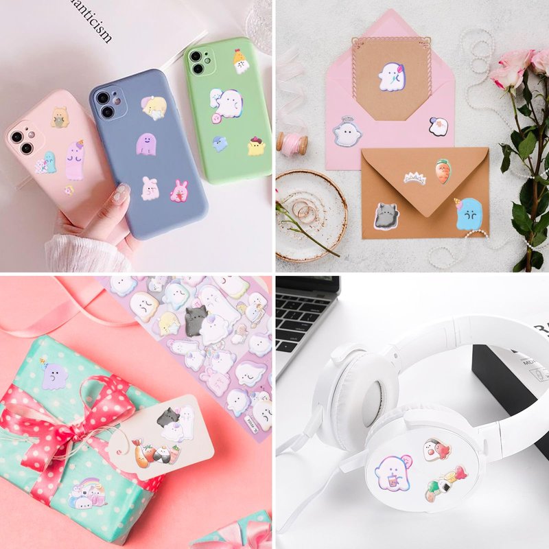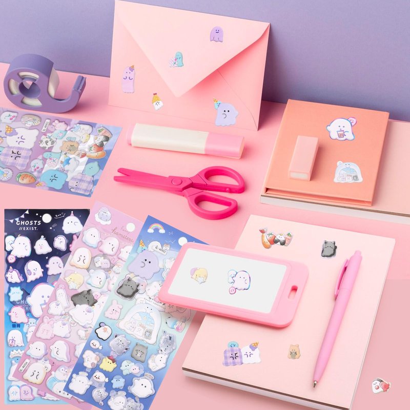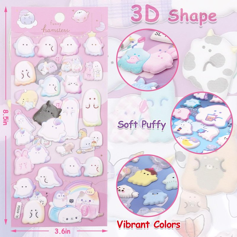 - ✔️【VIBRANT COLORS】Package comes with 4 pack small soft puff stickers, including ghost face hamster cats for adults, books, journaling, stationery, little girls valentines gifts.