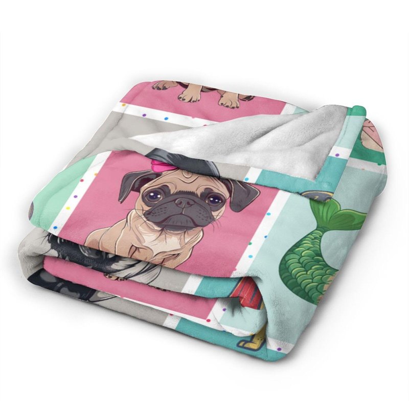 Cute Pug Blanket Cartoon Dog Fleece Throw Blanket Toddler Nursery Fuzzy Plush Super Soft Cozy Warm Pug Stuffed Animal Decor Blanket Gifts for Boys Girls Kids Adult Men Women 50"X40"