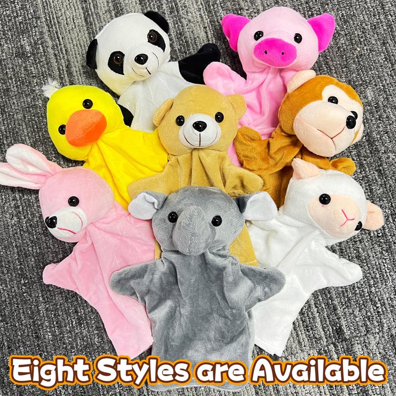 - ANIMALS HAND PUPPETS PLUSH TOY: The cute and fun animal hand puppets come in 8 different styles: pig, bear, panda, duck, monkey, sheep, rabbit, and elephant. The plush material makes them very soft and these plush animal hand puppets are perfect for ages 3-8 toddlers and kids to play with!
