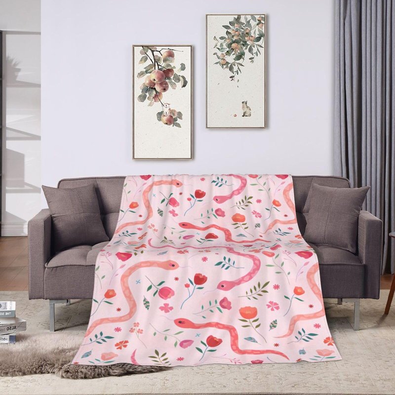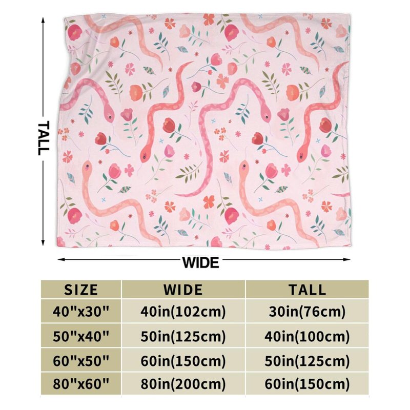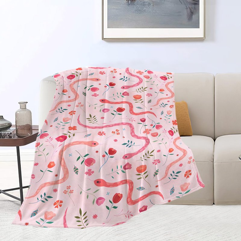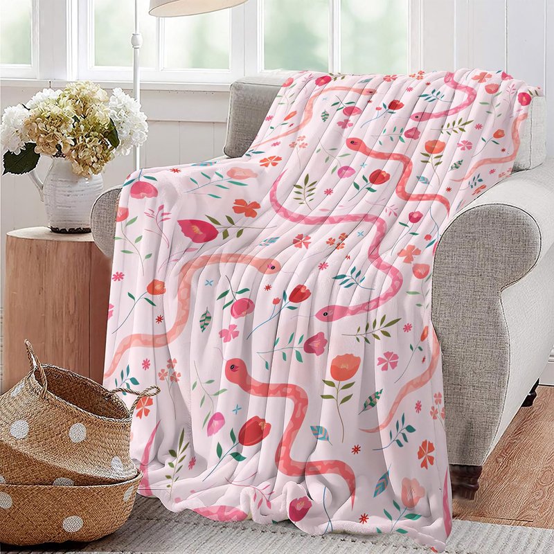 Cute Snake Reptile Blanket Ultra Soft Cozy Pink Flower Snake Throw Blanket Fleece Fuzzy Plush Bedding Blanket Real Snake Lovers Gifts for Women Girls Kids Adults Couch Sofa 50"x40"