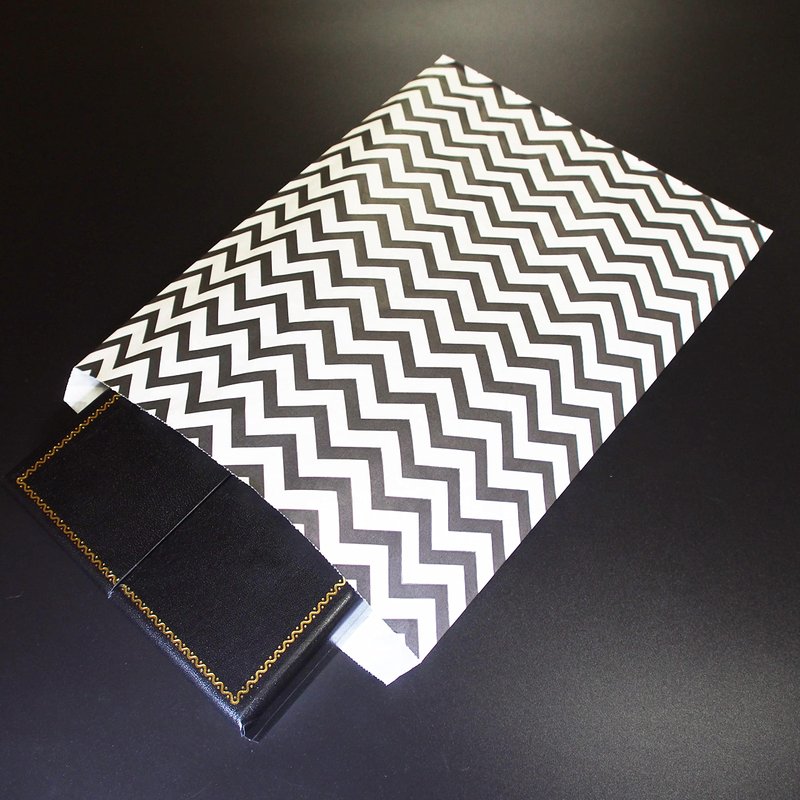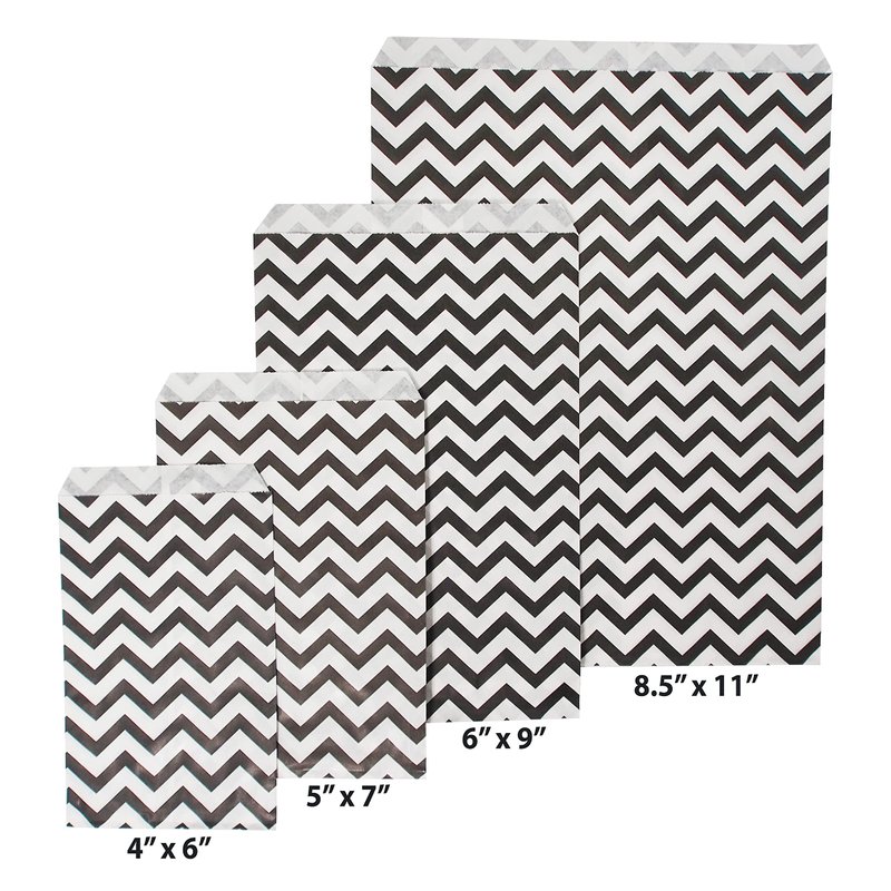 These CuteBox Chevron patterned flat paper gift bags are a great choice for any retailer, party thrower or dedicated collector of flat paper gift bags. The eye-catching design is sure to draw attention from your family, customers, and friends. Our chevron bags are available in pink, blue, teal, silver or black. The 4 different sizes (4” x 6”, 5” x 7”, 6” x 9”, 8.5” x 11”) allow the bag to hold a wide variety of items, everything from jewelry boxes to baked goods to whatever party favors you have planned! We offer these bags in packs of 100, a quantity that works for both party throwers or smaller retailers! Each bag is coated with a semi-gloss finish for both aesthetics and to provide minor protection from tearing and piercing. These bags have no gusset which allows them to lie as flat as your choice of filling will allow, making them perfect for table settings or on top of display cases. The white bag base means these are perfect for any occasion, and some of the pastel colors work especially well in Spring and Summer!