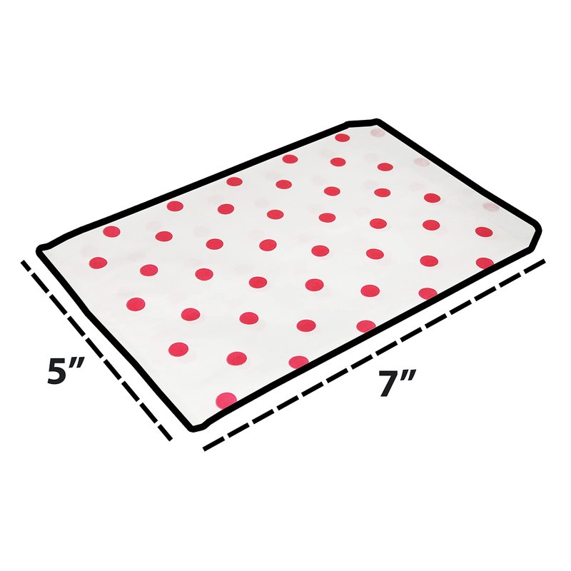 These CuteBox Polka Dot patterned flat paper gift bags are a great choice for any retailer, party thrower or dedicated collector of flat paper gift bags. The eye-catching design is sure to draw attention from your family, customers, and friends. The 4 different sizes (4” x 6”, 5” x 7”, 6” x 9”, 8.5” x 11”) allow the bag to hold a wide variety of items, everything from jewelry boxes to baked goods to whatever party favors you have planned! We offer these bags in a variety of quantities to cater to your individual needs. Those who are having small events at their homes might prefer our 100 pack, while retailers who need them in bulk might gravitate towards our larger offerings. Each bag is coated with a semi-gloss finish for both aesthetics and to provide minor protection from tearing and piercing. These bags have no gusset which allows them to lie as flat as your choice of filling will allow, making them perfect for table settings or on top of display cases. We offer both white and kraft bag bases with polka dots of red and white/silver, and combinations with all our styles as well. We are sure to have a bag for every occasion!