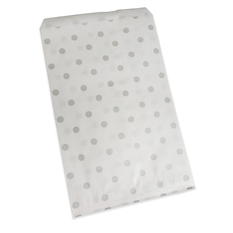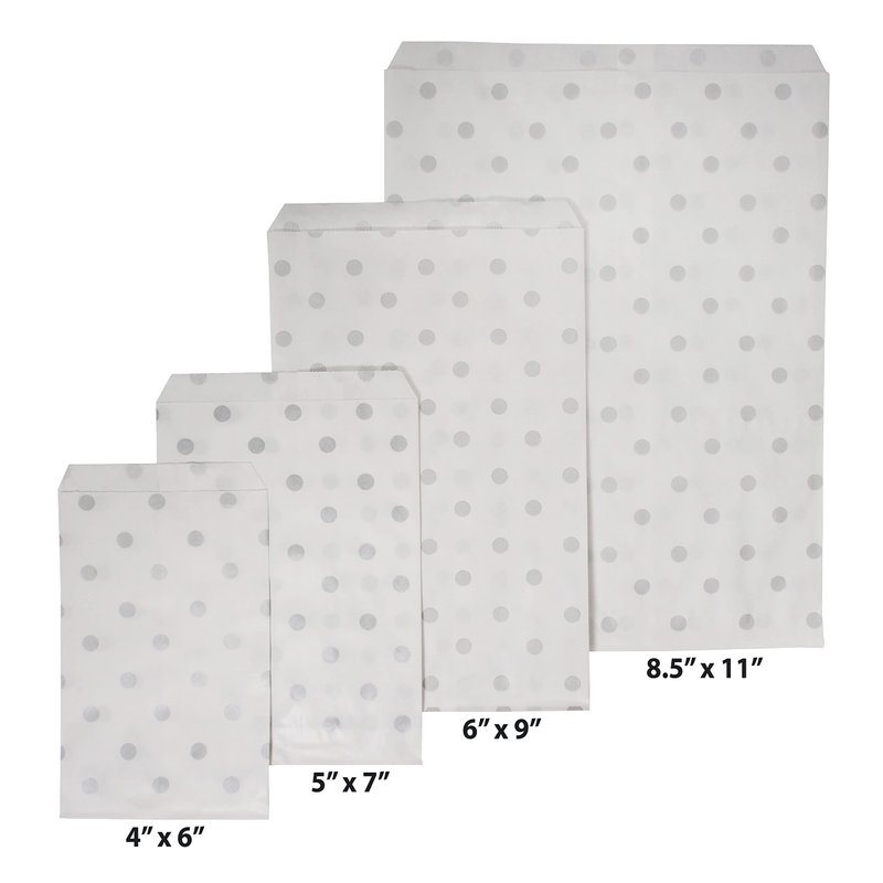 CuteBox Flat Paper Silver Polka Dot White Gift Bags (6" x 9") for Merchandise, Crafts, Party Favors, Retail, Handmade Goods, Arts and Crafts, Outdoor Events, Holidays, Weddings 200pc