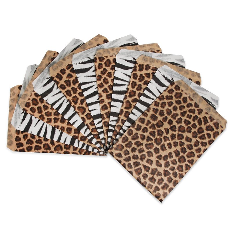 - These animal patterned paper bags are eye-catching and multipurpose! The Zebra and Leopard patterns are sure to hold the attention of your friends and customers.
