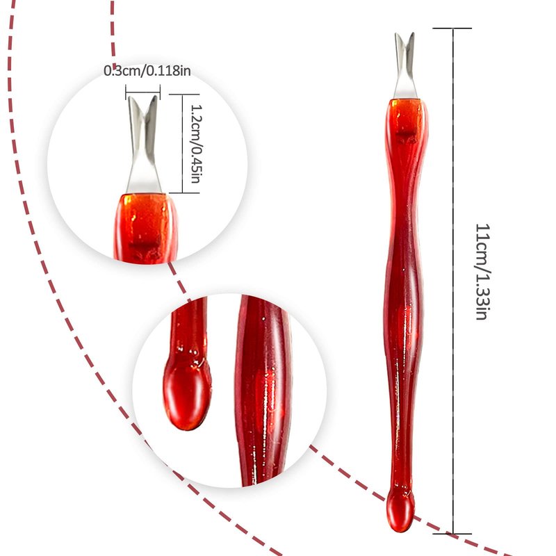 - UTICLE REMOVER TOOL DUAL TIPPED DESIGN: the v-shaped blade safely and quickly trims excess cuticles and hangnails with minimal effort; The pen-like end is applied for pushing cuticles, the design easily helps to shape the cuticles; With handle, can provide convenience and comfort for you to hold, make nail cleaning work easier