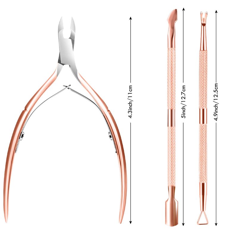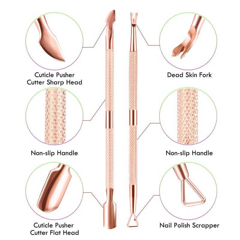 - Ergonomic Non-slip Handle Design -- Our professional cuticle remover tools set is designed with an ergonomic non-slip handle, providing you with a comfortable hand feeling, you can remover the cuticles more effectively. In addition, the rose gold color makes it a beautiful set of manicure artwork.