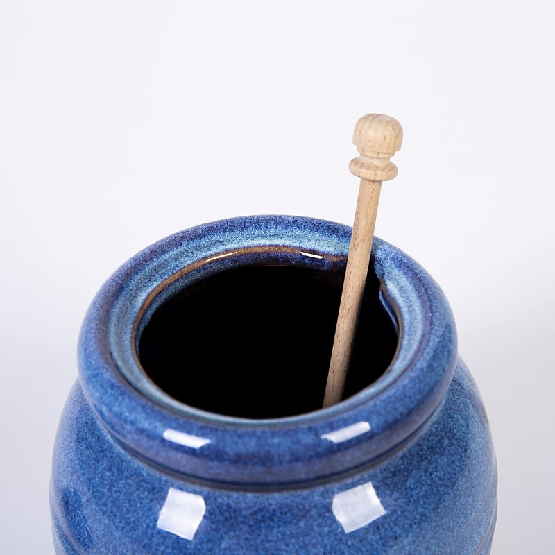 Cutiset Ceramic Honey Pot with Lid and Dipper, 20oz rustic Honey Jar (Blue)