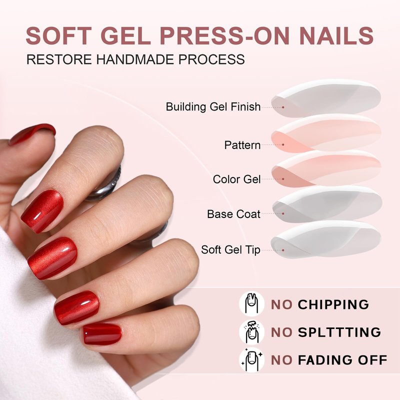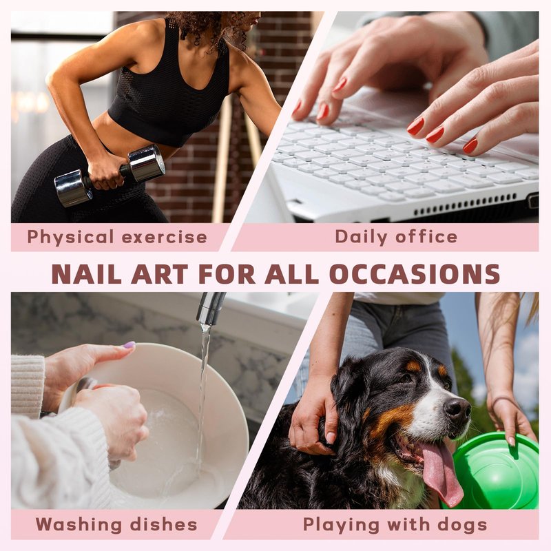- Easy to Apply & Remove: If you want a salon-like, long-lasting effect, it is recommended that you use both the nail glue and the jelly stickers. Soak your hands in warm water for 10 minutes and gently pry your nails from the side to remove the glue easily and without damage.press on nails are perfect for date night or small events!