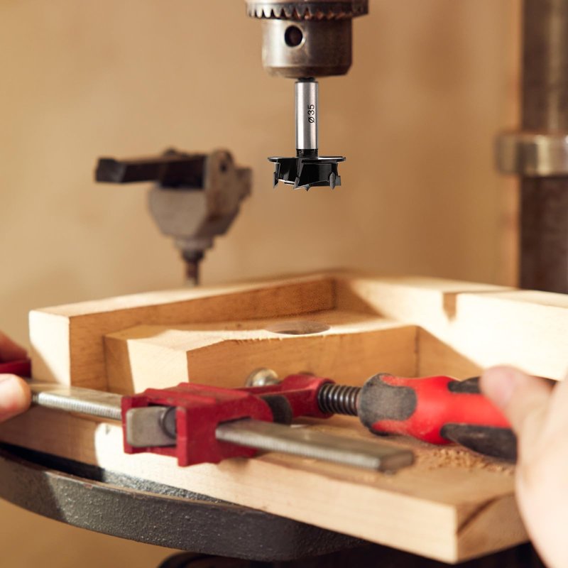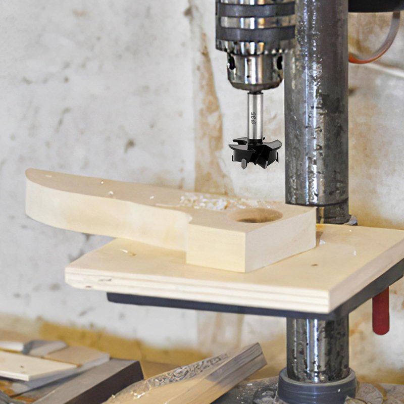 - [Widely Applications] The sharp drill bit can be used for drilling holes on on wood and plastic products, furniture, door hinge, desk. Used on cutting wood, plywood, solid wood boards, MDF, plastics, etc. Great for boring concealed hinges and door locks.