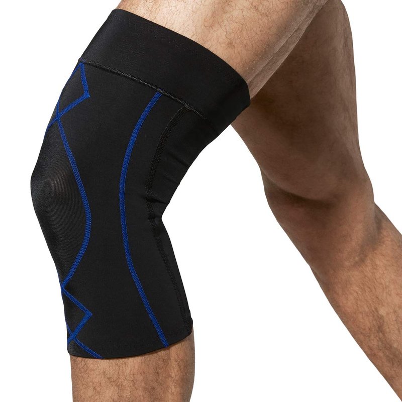 CW-X Men's Stabilyx Knee Support Compression Sleeve, Black/Blue, Medium
