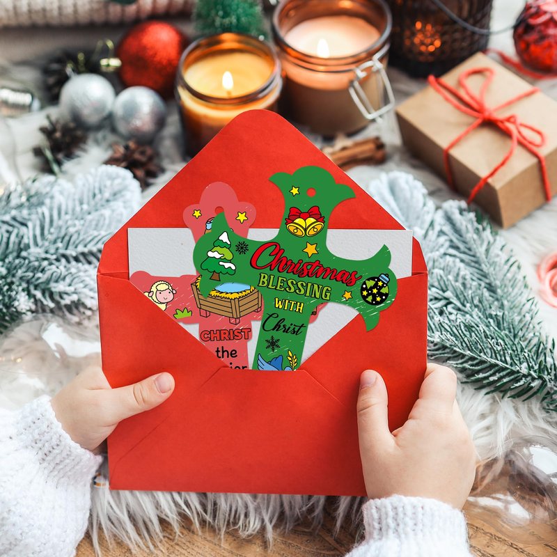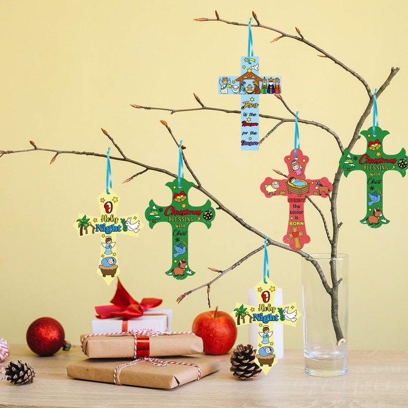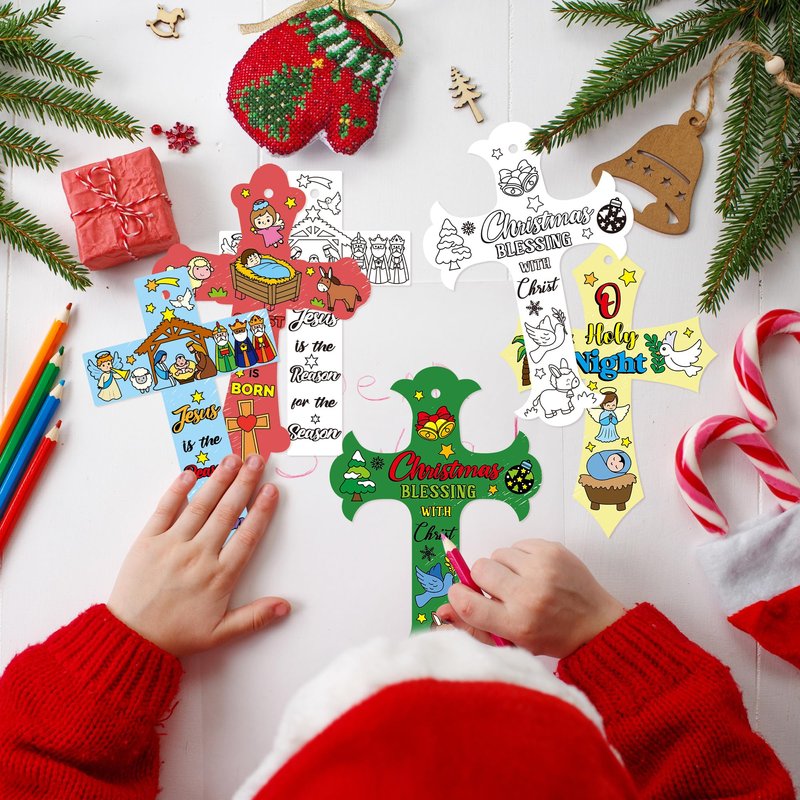 CY2SIDE 80PCS Color Your Own Christmas Nativity Cross Make Your Own Nativity Scene Cross Ornaments for Kids DIY Christmas Christian Religious Sunday School Crafts for Kids and Fun Home Activities