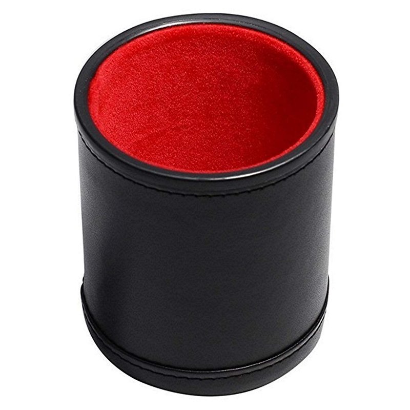 Cyber-Deals Set of Dice Cup Black PU Leather w/Plush Red Felt Lined + Spanish Poker Dice Ivory Tone (Gift Boxed)