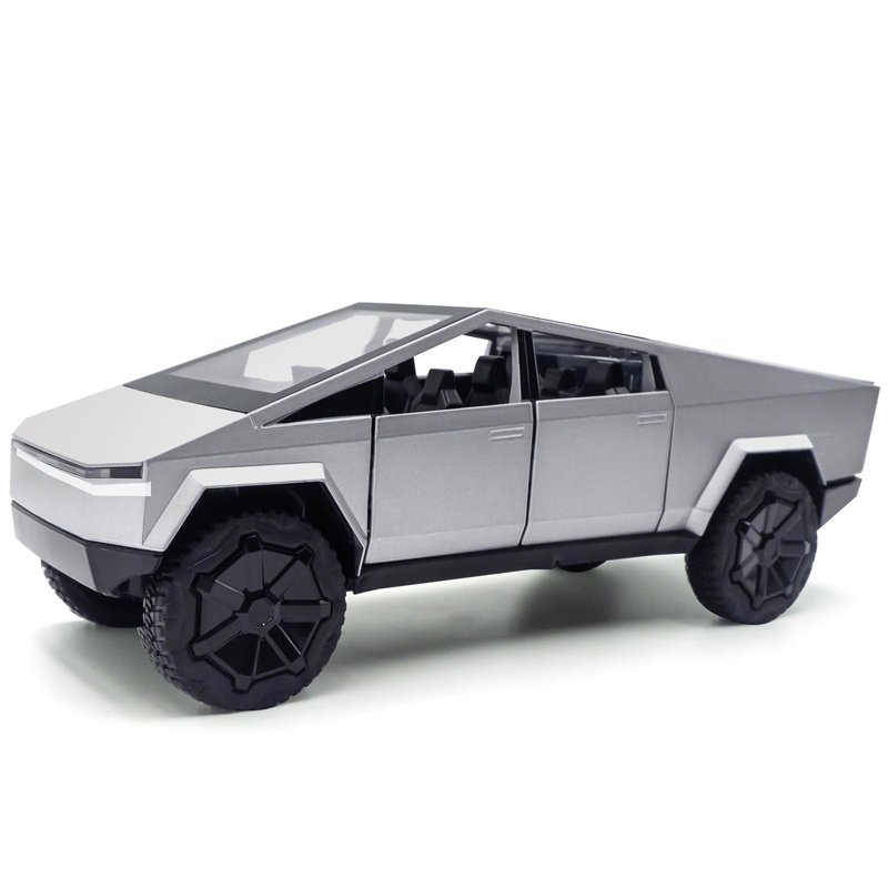 Cybertruck Model: 1/24 Diecast Metal Toy Trucks with Lights and Sounds, Mini Vehicles Toys for Boys, Ages 3 and Up (Silver)