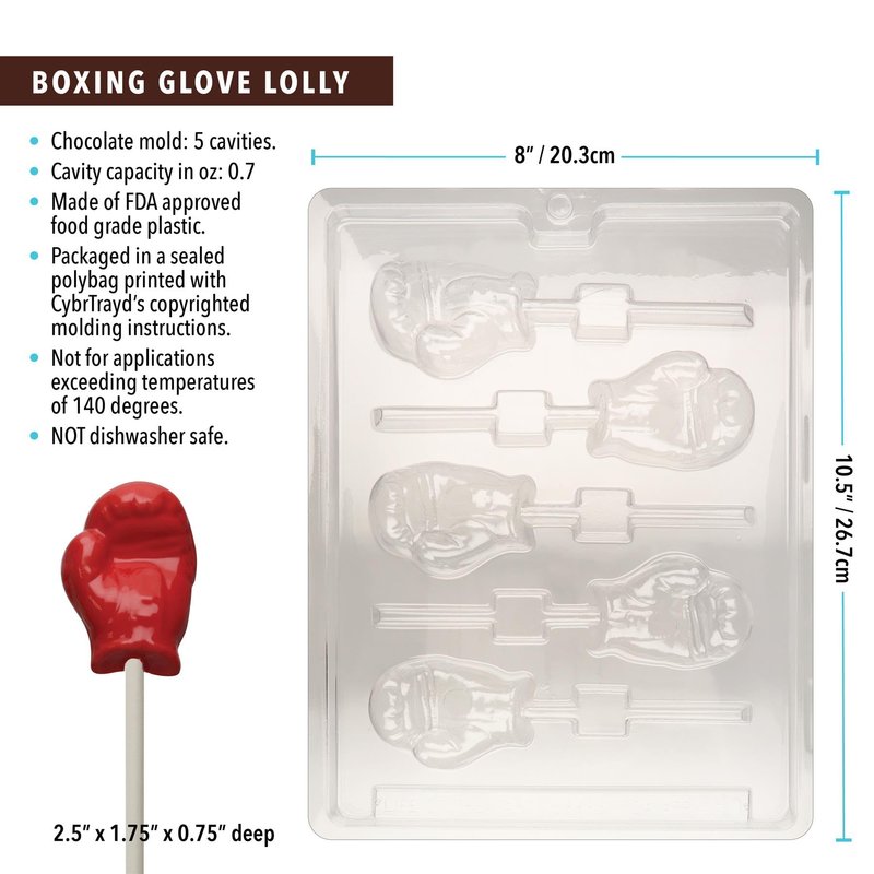 Cybrtrayd Boxing Glove Lolly Chocolate Candy Mold with Exclusive Cybrtrayd Copyrighted Chocolate Molding Instructions