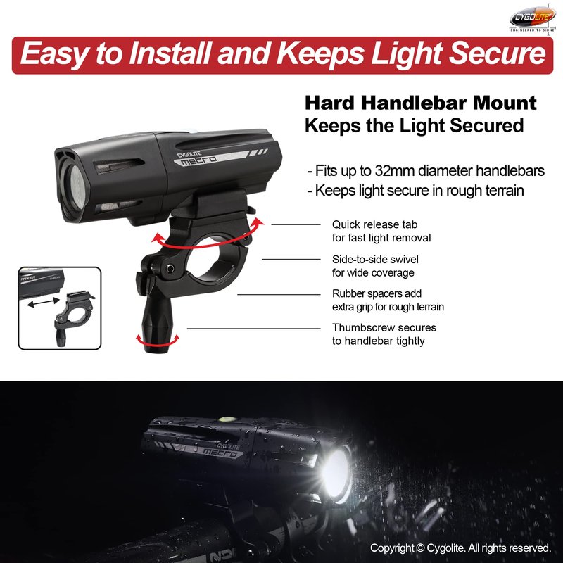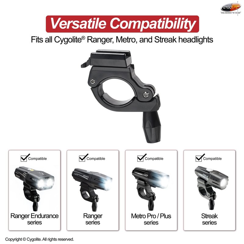 - This genuine Cygolite handlebar mount is compatible with Cygolite Ranger Endurance, Ranger, Metro Pro, Metro Plus, Metro, and Streak series bicycle lights.