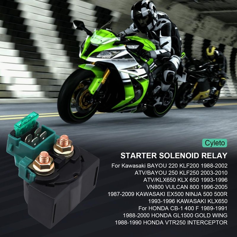 Cyleto Starter Solenoid Relay for Kawasaki BAYOU 220 KLF200 1988-2002ATV/BAYOU 250 KLF250 2003-2010 ATV/KLX650 KLX 650 1993-1996/VN800 VULCAN 800 1996-2005/HONDA VT750C Shadow 2000/SUZUKI GSXR750 1993