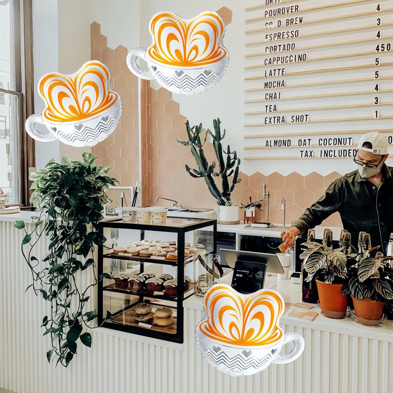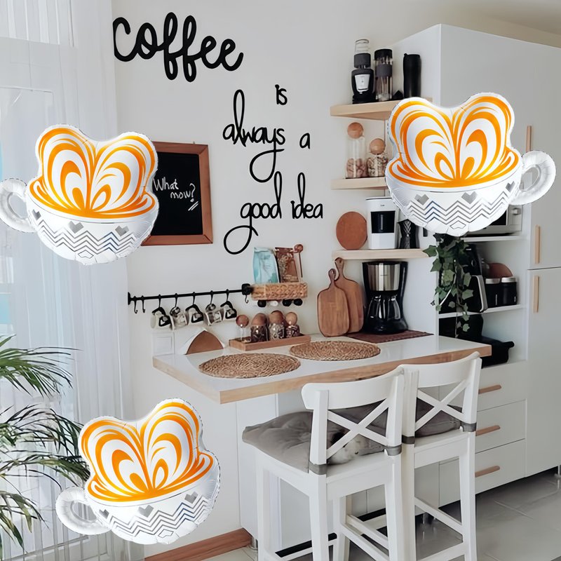- Coffee Culture : Latte coffee symbolizes taste and enjoyment. This balloon is a tribute to coffee culture. Placing these balloons in your coffee bar or coffee wall not only embellishes the space, but also conveys your passion for coffee to your guests, adding conversation and spice to the party.