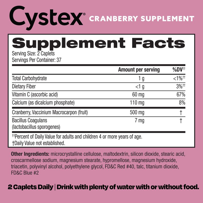 - MORE THAN CRANBERRY: Cystex Cranberry Supplements includes Vitamin C and a probiotic to help cleanse and protect against UTIs.
