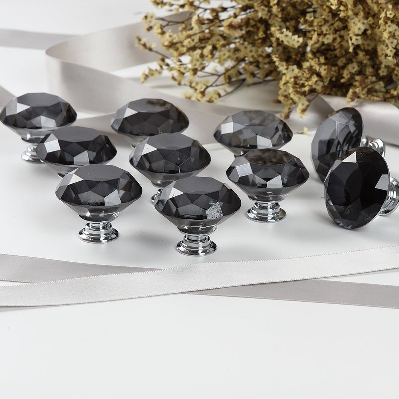 CZC HOME 10 PCS Diamond Crystal Glass Pull Handle Cabinet Knobs Cupboard Drawers Cabinet Dresser Bookcase Wardrobe (40mm, Grey)