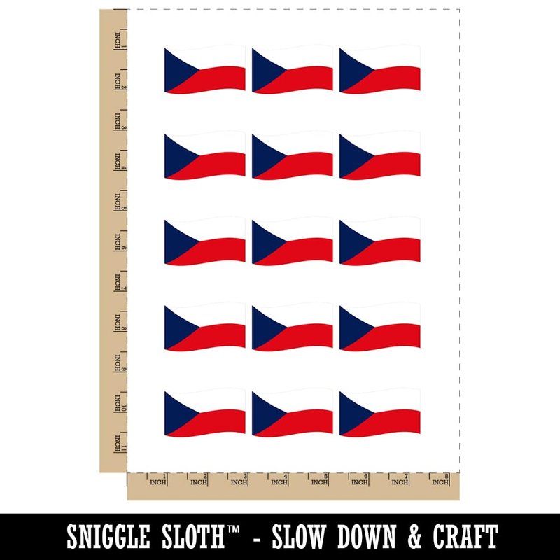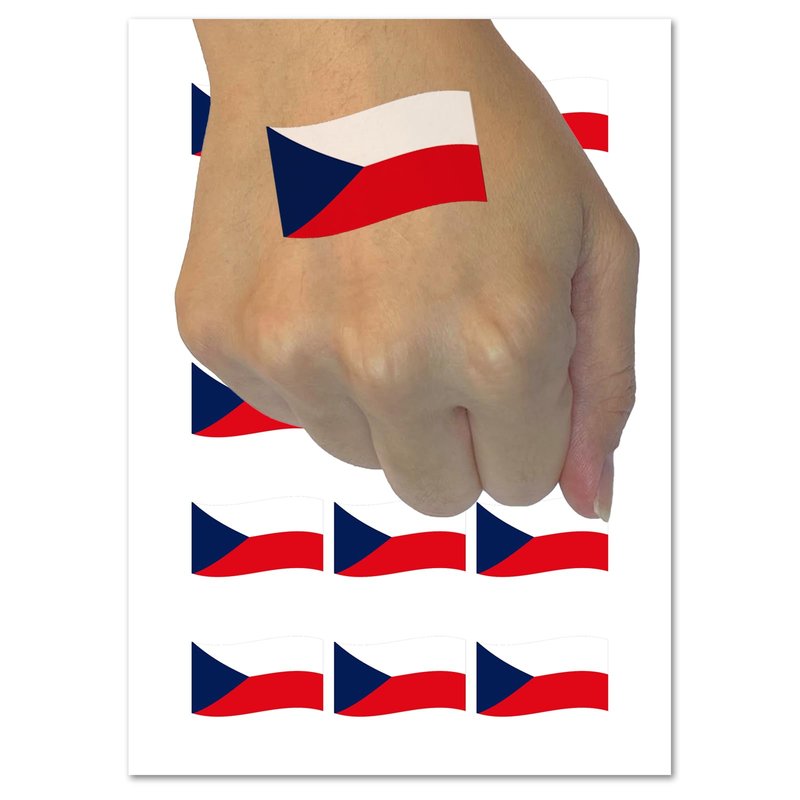 Czech Republic with Waving Flag Cute Temporary Tattoo Water Resistant Fake Body Art Set Collection - 15 2" Tattoos (1 Sheet)