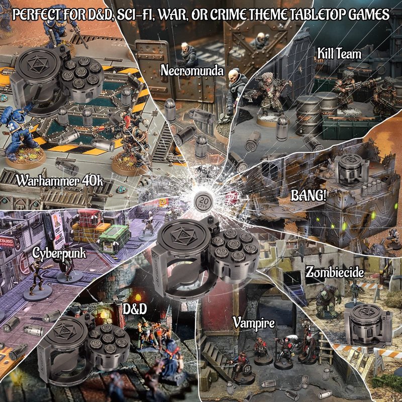 - SPINNING REVOLVER CYLINDER DICE CONTAINER - Comes with a Spinning Revolver Cylinder Dice Case that is not only cool but also practical for storing your dice. This dice box also doubles as a fidget toy for D&D players, perfect for keeping your hands busy during lulls in gameplay or virtual meetings.