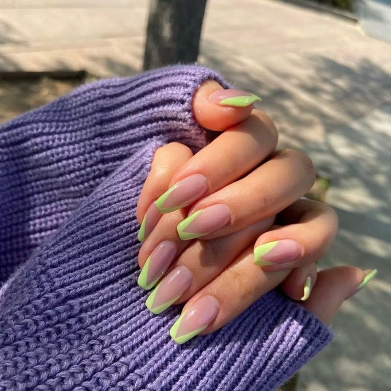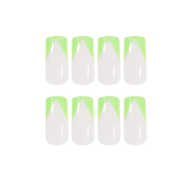 C.Z.Z.T.T.NAILS press on nails [24 Pack] Push On Green Beveled French French Nails | Reusable Slides | Thin and Breathable | Comes with Tool Bag | Fingertip Art (Daily, Party, Wedding, Gift)