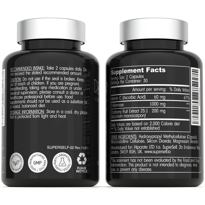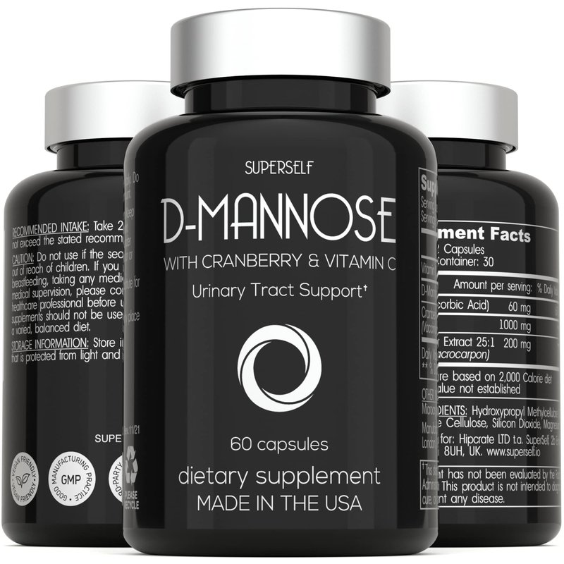 - HIGH POTENCY BLEND – These d-mannose 1000mg capsules also contain 200mg of cranberry extract and 60mg of vitamin C per serving. Working together, all 3 active ingredients provide a potent protection against recurrent UTIs. Each package contains 60 capsules, a 1-month supply at the recommended dose of 2 per day.