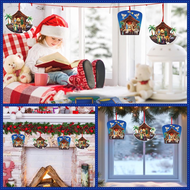 - 【Nativity Stickers Crafts Ornaments for Kids】: Nativity crafts Kit for kids includes 24 sheets DIY Nativity scene cardboard in 2 styles, 24 sheets Nativity scene stickers and 24pcs red ribbons. The perfect Christmas stickers can stimulate children's imagination and creativity and design the Christian Jesus birth nativity scene in their favorite style. Funny make your own nativity scene crafts for Christmas tree hanging decorations.