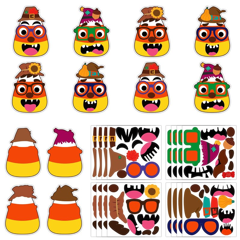 D4DREAM Thanksgiving Crafts for Kids 24Pcs DIY Fall Corn Scarecrow Head Craft Kits Thanksgiving Party Stickers Supplies for Autumn Party Favors Thanksgiving Party Crafts Home Classroom Activities