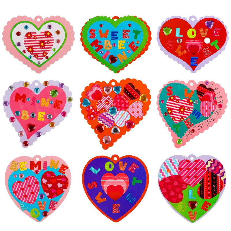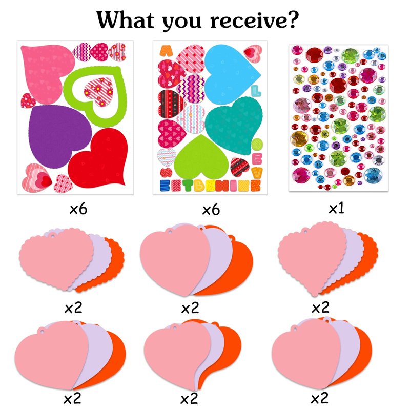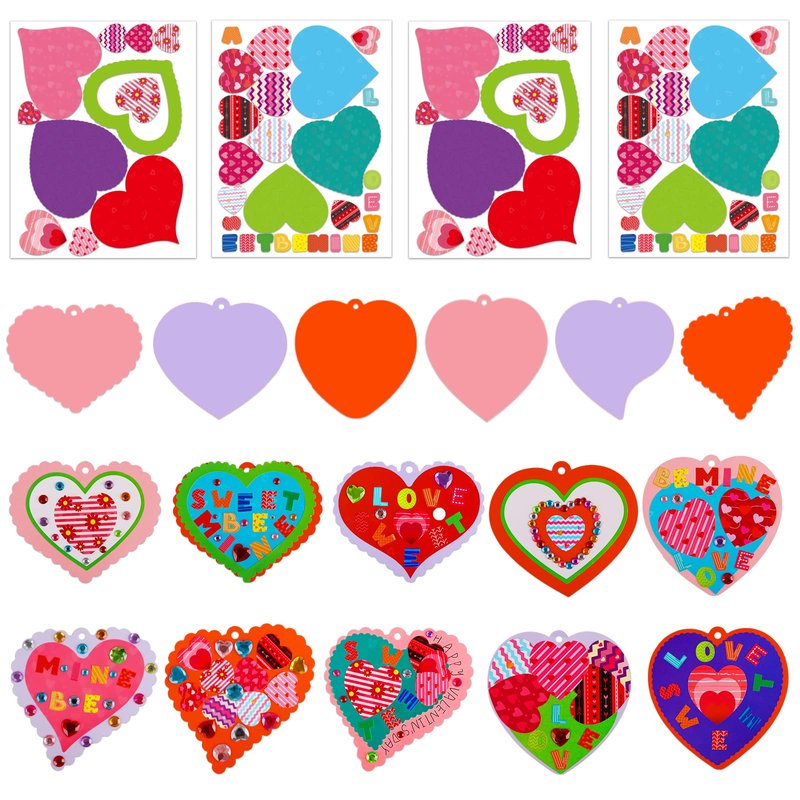 D4DREAM Valentines Day Heart Stickers Craft Kit for Kids 24pcs DIY Heart Ornaments Heart Valentine Craft Kits for Wedding Adults Kids Valentine Gift Exchange Classroom Activity Art Project