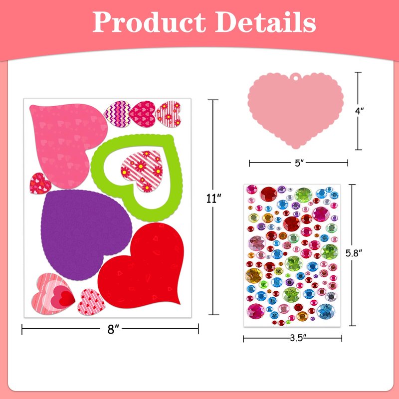 - 【MATERIAL】:The cards are made of durable cardboard,vinyl stickers and heart cards measure 4"x 5" stickers measure 8"x 11",rhinestone measure 3.5" x 5.8" perfect sizes fir kids.