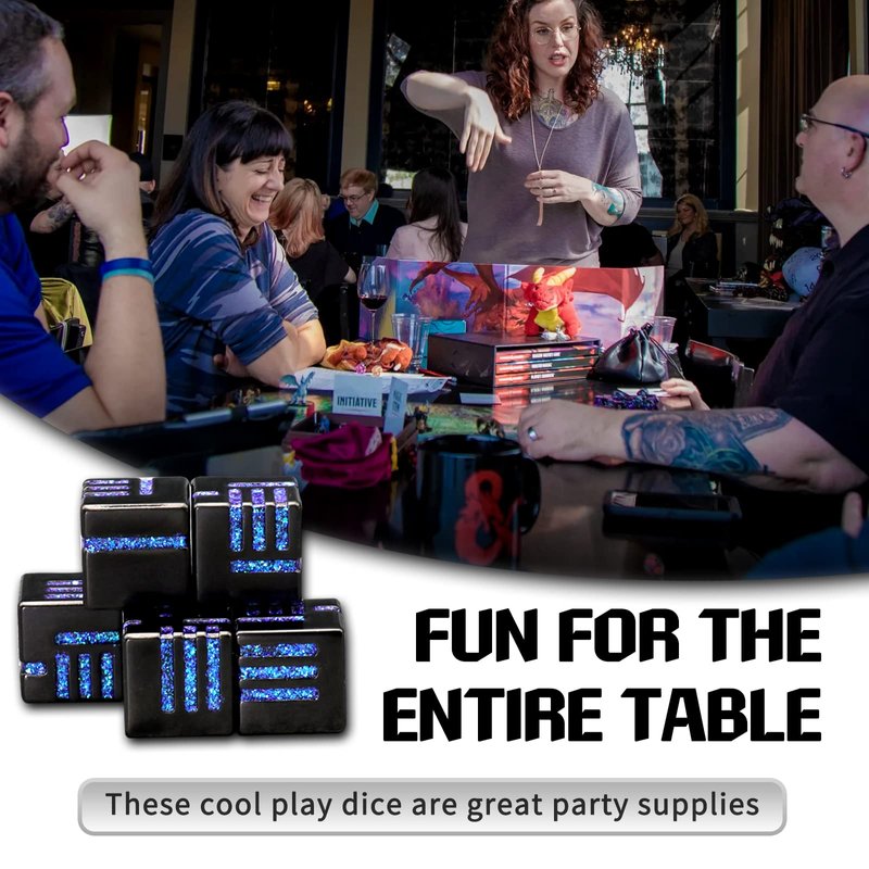 - COOL & UNIQUE DESIGN: Each side of the dice has irregular lines that represent specific numbers. The cool and unique design brings more fun to players. One set dice total 6 PCS of D6 Metal Dice. To protect table surface, it is recommended to use with trays and mats.