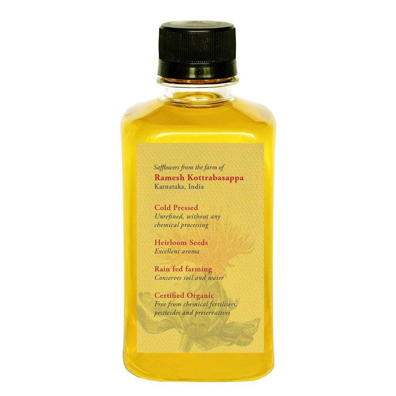 Our safflower seeds come from Ramesh Kottrabasappa's family owned organic farm in Gadag, India. Extracted using a traditional Indian method of cold pressing called the "kachchi ghani", it preserves nutrients that are critical for healthy skin.