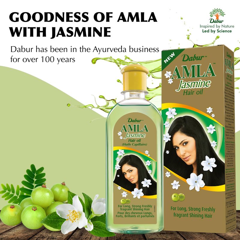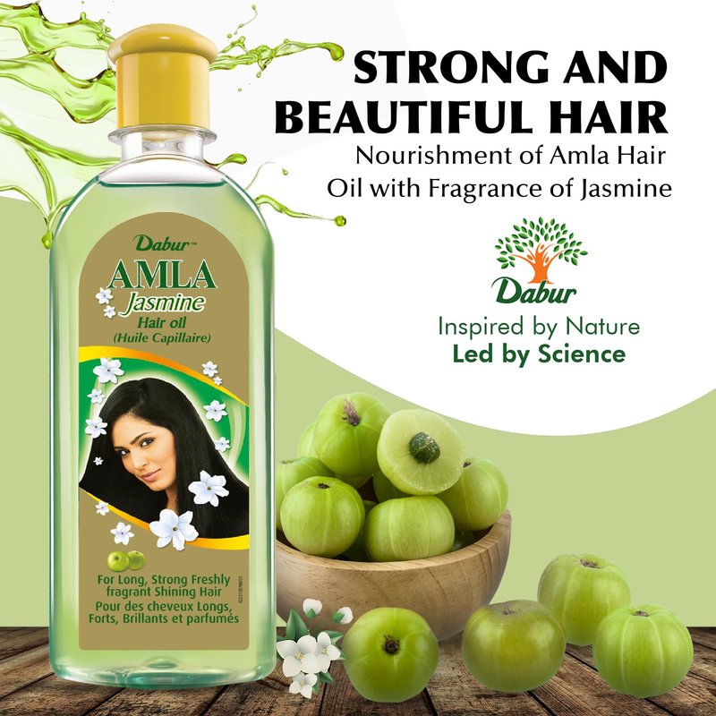 - POTENCY: Our Dabur Amla Hair Oil has natural Amla oil as the main ingredient. It nourishes the scalp and strengthens the hair strands, from root to tip, to give you thick, long, and shiny tresses. This oil smoothens frizzy hair and makes it flowing and easy to comb. Our Amla hair oil also contains Jasmine, which adds a fresh fragrance to the hair.