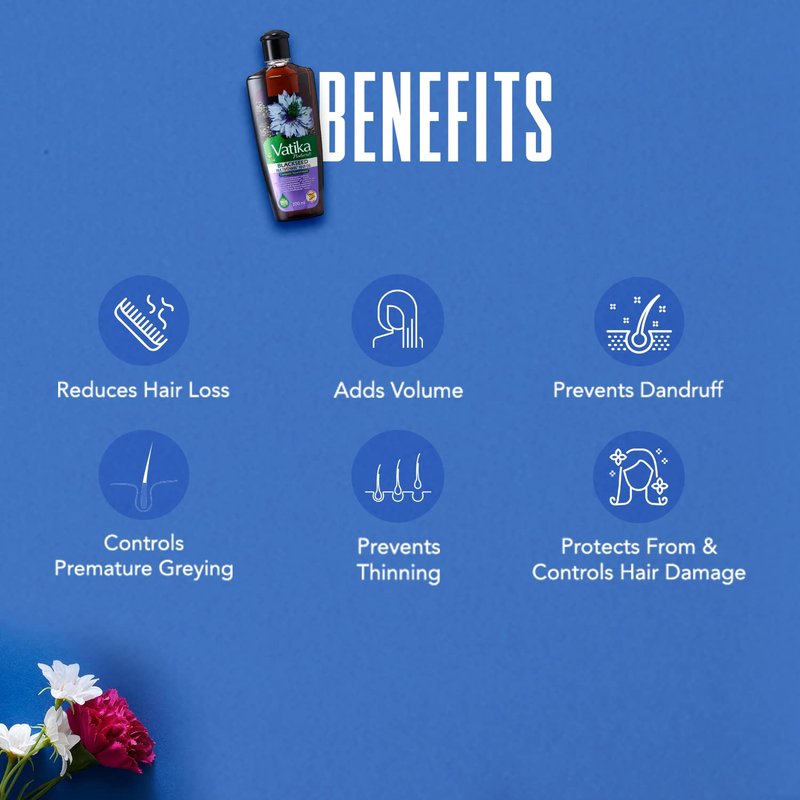 Dabur Vatika Ayurveda Herbal Black Seed Enriched Hair Oil for Complete Hair Care 200 ml / 6.76 fl oz)