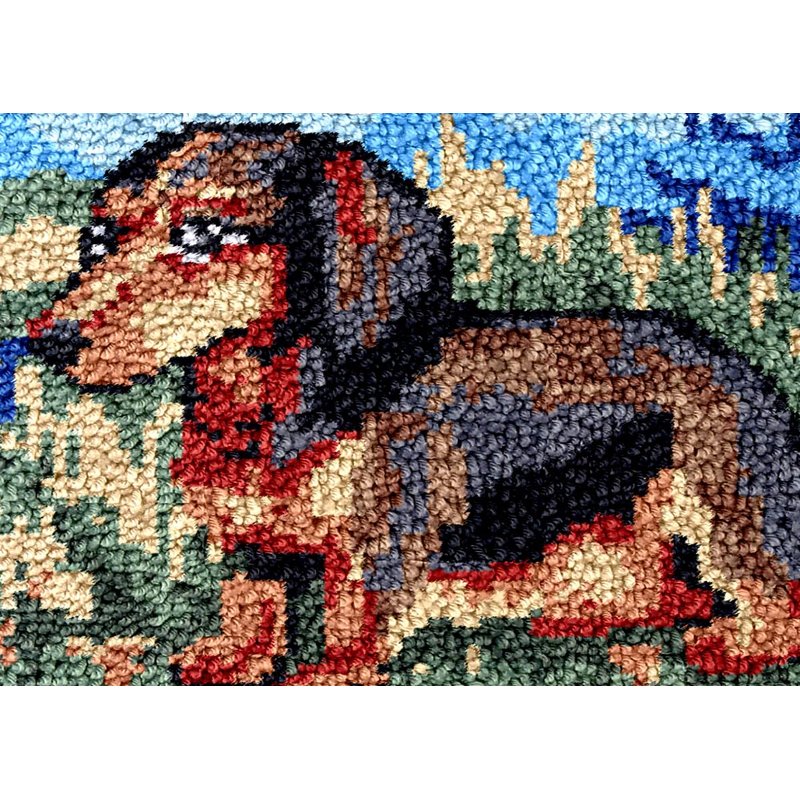Dachshund Sausagedog Latch Hook Rug Kit for Adults DIY Carpet Cushion with Printed Canvas Crochet Yarn Craft Hook and Latch Tapestry for Floor Decoration Pets Warm Pads 52x38cm