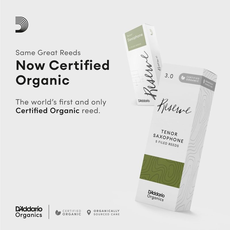 D'Addario Organic Reserve Tenor Saxophone Reeds - Sax Reeds - The First & Only Organic Reed - 3.0 Strength, 10 Pack