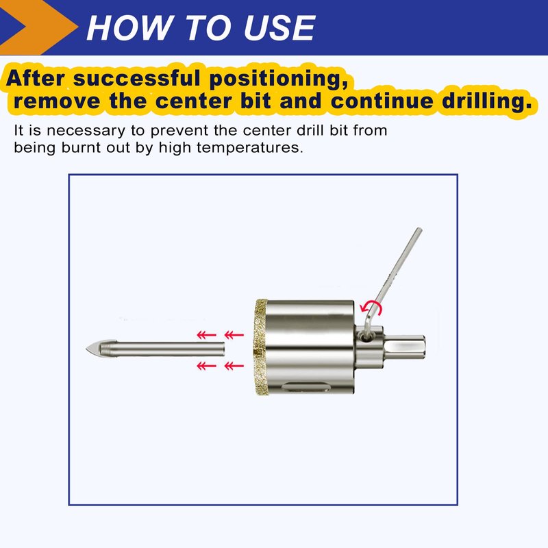 - Each Tile Hole Saw with a Removable Center Guide Bit--No Special Guiding Tools Needed