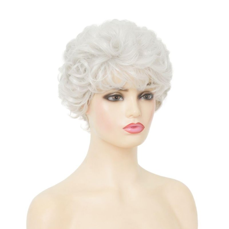 Dai Cloud White Short Wigs Womens Curly Wig with Bangs Old Women Pixie Cut Hair Wig for Cosplay Daily Use