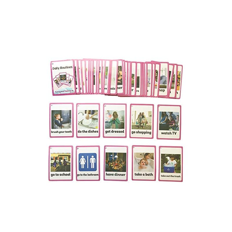 - 【INCLUDED】44 cards of Daily Routines ; 26 cards of Gestures;Total 70 Pcs/set. These kids learning English Words flash cards Suitable for toddlers 2-4 years old.