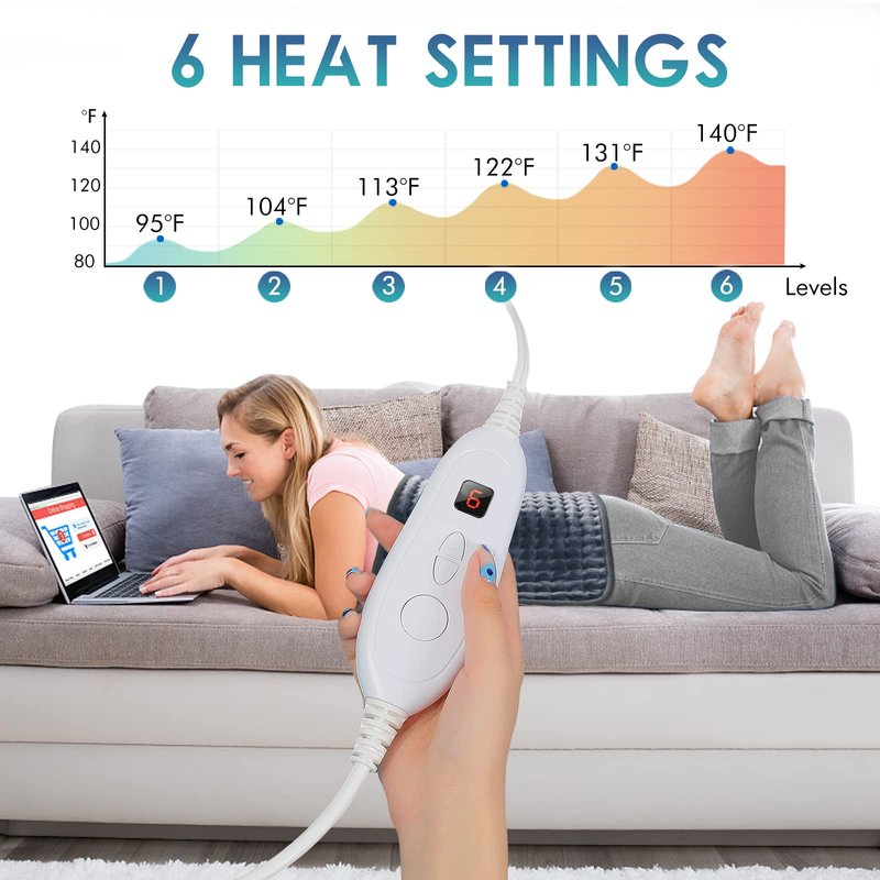 - Convenient Daily Use: Digital Controller with push-buttons is easy to operate. The 9.8 ft long cord allows you to use the heating pad anywhere you'd like such as bed, couch, or favorite chair.