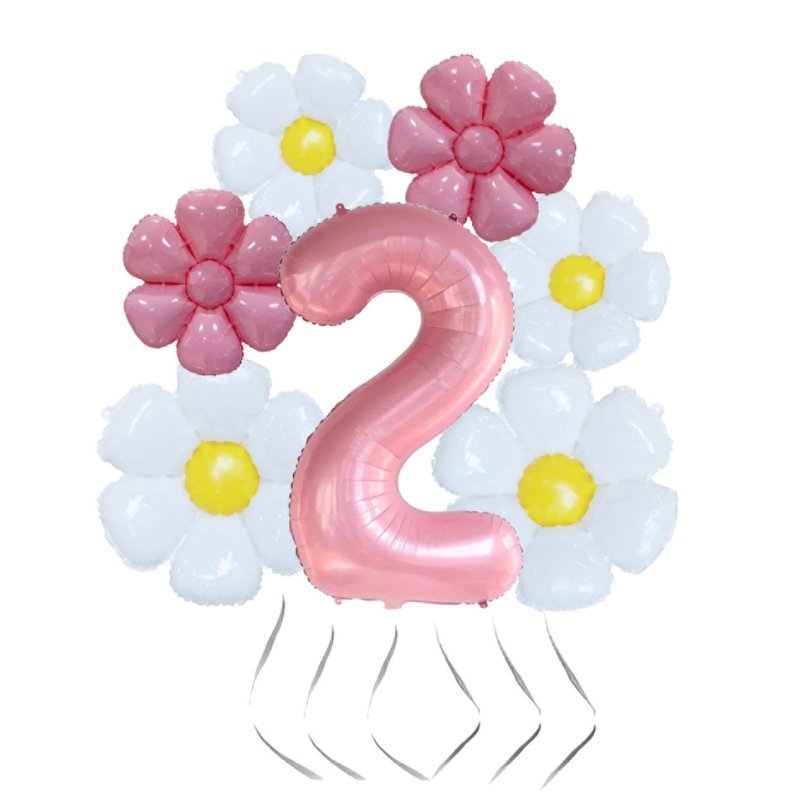 - Package Details: 1Pieces 40inch pink aluminum foil number 2 balloon, 2 pieces 26×21.6 inch daisy balloons,2 pieces 17.7×14inch daisy balloons,2 pieces 17.7×14inch pink daisy balloons ,a straw tube, a piece of 20 grains of dot glue,1 pieces coil